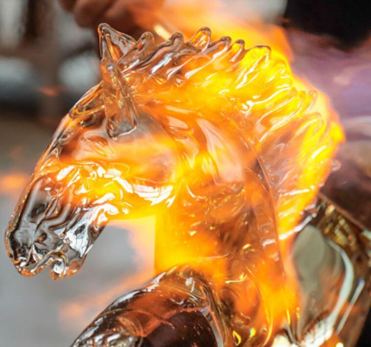 Qui comincia il ciclo produttivo della fusione del vetro, dove i Mastri vetrai - secondo le antiche tecniche della lavorazione della tradizione veneta - cominciano a dar vita ai prodotti unici e artigianali di Arte di Murano.